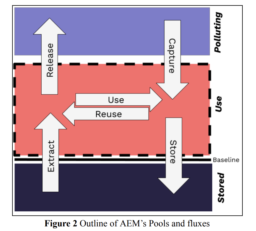 AEM tracks five core flows or “fluxes”: capture, storage, extraction, use/reuse, and release. Considering these flows together allows all types of projects to quantify their impact based on the net change they create in atmospheric carbon.